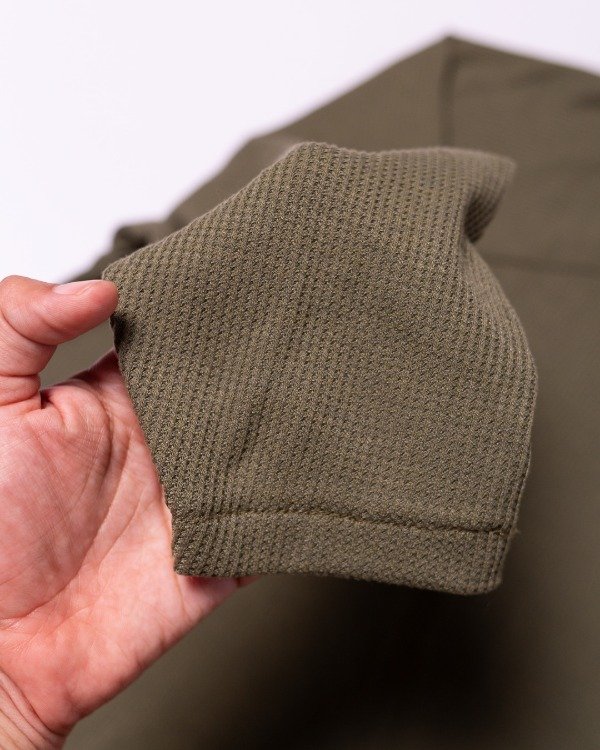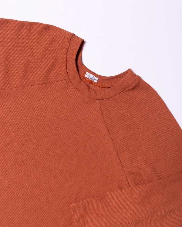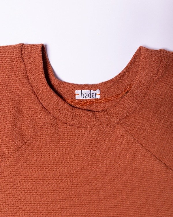 Buzo tela panal de abeja, con cuello a la base o con cuello tipo polera, con recortes con manga ranglan.
