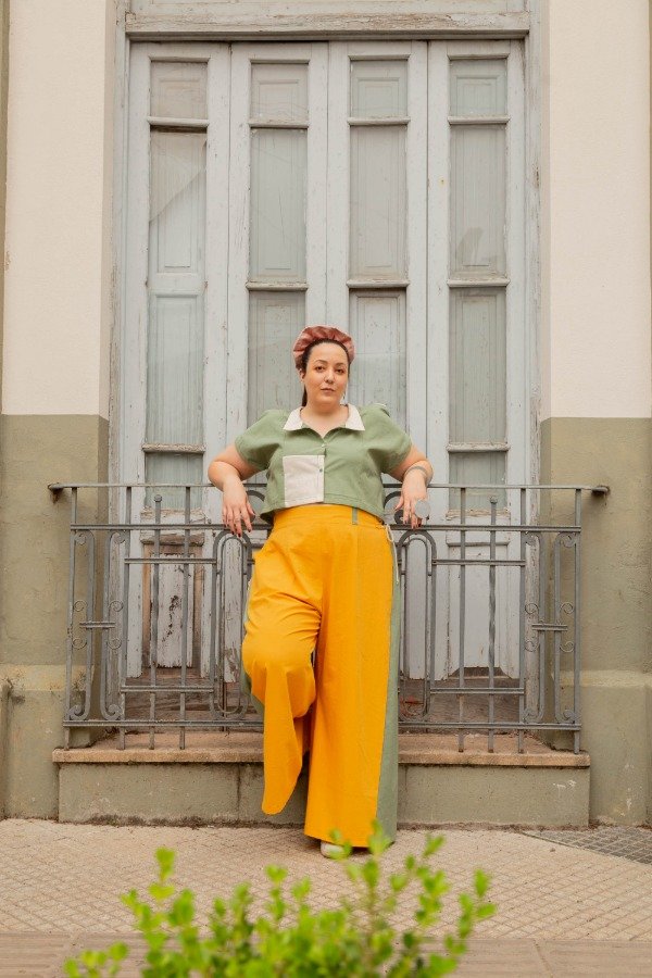 Verde y natural talle 50, pero también podía usar la talle 48 y 52, dependiendo que tan ajustado o suelta usa la prenda.