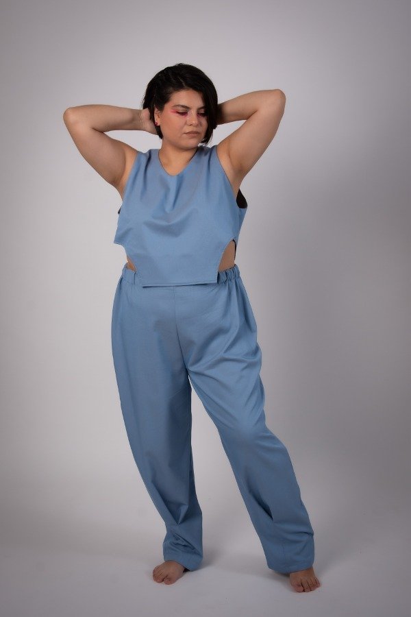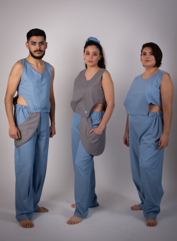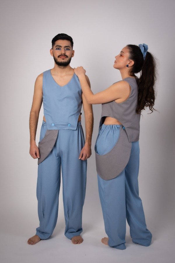 Jardinero Úrsula, prenda que se divide en 3, puede separarse pantalón de la musculosa, que está es a su vez reversible, y se puede sacar el bolsillo. El pantalón cuenta con elástico en espalda.
