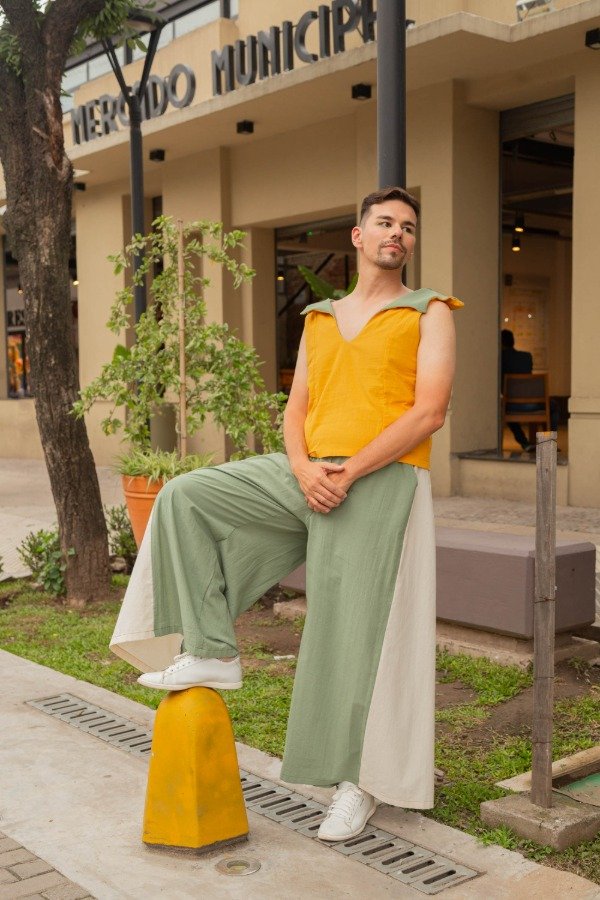 Pantalón Azahar ancho en tusor liviano 100% algodón, con recortes a los costados combinando colores, que se anuda a los lados con cordones. Podes pedirlo en la combinación y talle que quieras o comprar los que están en stock.Cada talle tiene amplitud suficiente para abarcar 2 talles. Te recomiendo pidas el talle que sueles usar en pantalón así te sientes súper cómode. Tomate el largo desde cintura a donde quieras que llegue el pantalón y te lo dejo a tu medida. Si deseas una prenda que no está en stock comunícate con nosotros por Whatsapp y te lo generamos para que puedas realizar tu compra. Recuerda que las prendas solicitadas que no estén en stock tendrán una demora de 15 días para ser despachadas.