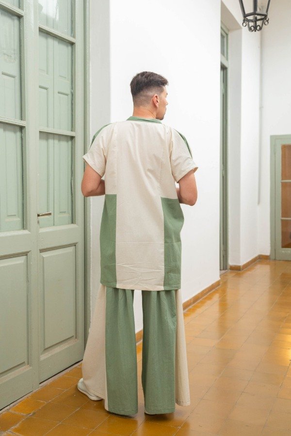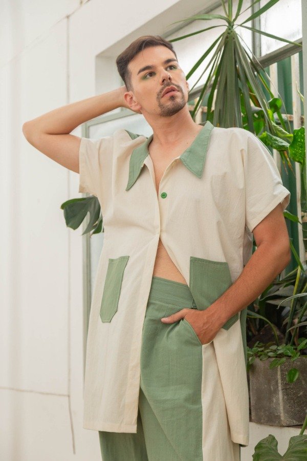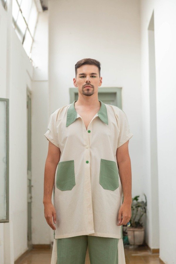 Camisa Overzise Alba - natural y verde